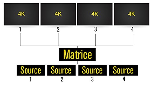 Cette matrice vous permet de diffuser une ou plusieurs sources différentes (exemple : votre lecteur Blu-Ray et votre ordinateur portable) vers plusieurs écrans distincts. Elle peut afficher jusqu'à 4 sources HDMI différentes sur 4 téléviseurs HD ou vidéoprojecteurs distincts.