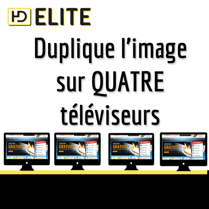 Compatible 3D, sans aucune perte de qualité grâce à son réhausseur de signal intégré, 4 ports. Diffuse l'image HD vers 4 écrans simultanément.